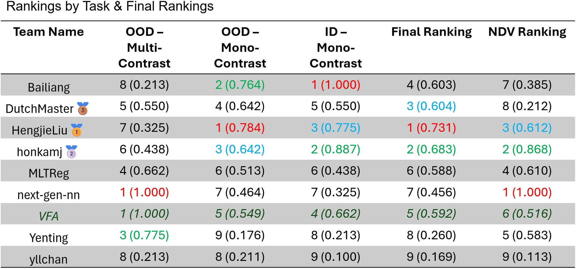 - A: Not necessarily. The validation set may not fully represent the diversity of the final test cases. The test set may include additional brain imaging modalities, and their exact combinations will not be disclosed to preserve the zero-shot setting.